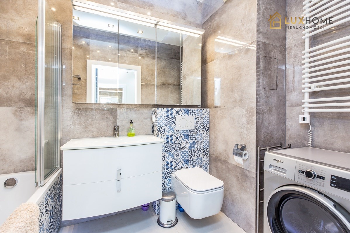 | Wyposażenie łazienki | lustro, natrysk, pralka, prysznic, umywalka, wanna, WC |